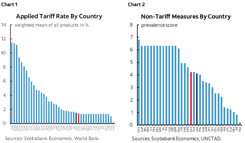 Navarro says that foreign countries are unfair with higher tariffs and non-tariff barriers than the US imposes. That can be true in some cases, but not in many others. Chart 1 shows the ranking by weighted average tariff barriers and that Canada and the US are identical despite US trade aggression, Japan isn’t materially higher at all and ditto for much of Europe. Where the tariff barriers are higher tend to be across other Asian and LatAm countries. Chart 2 shows the ranking by average non-tariff barrier and here too the US and Canada are identical, Japan has fewer, and Europe tends to have more. Some NTBs are indeed arbitrary and protectionist, while others can reflect choice over food safety standards or environmental policies that countries like Europe and Canada treat more seriously than the US.