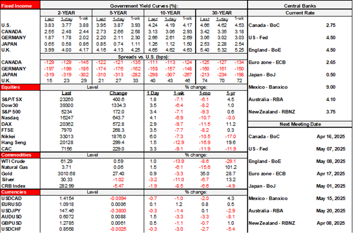 - Equities rally, bonds continue to sell off as markets await next steps in trade war