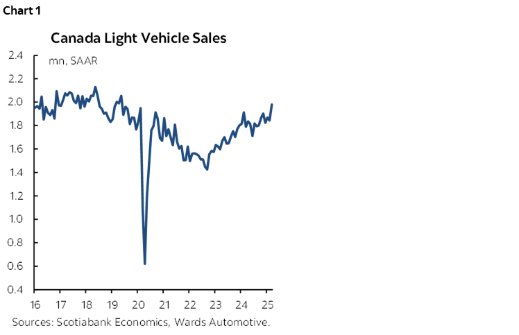 Our outlook for Canadian light vehicle sales of 1.84 mn in 2025 and 1.83 in 2026 likely faces downside risk, notably in the outer years to reflect developments and pressures that the escalating tariffs will have on the automotive sector and overall economic activity.