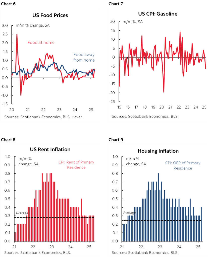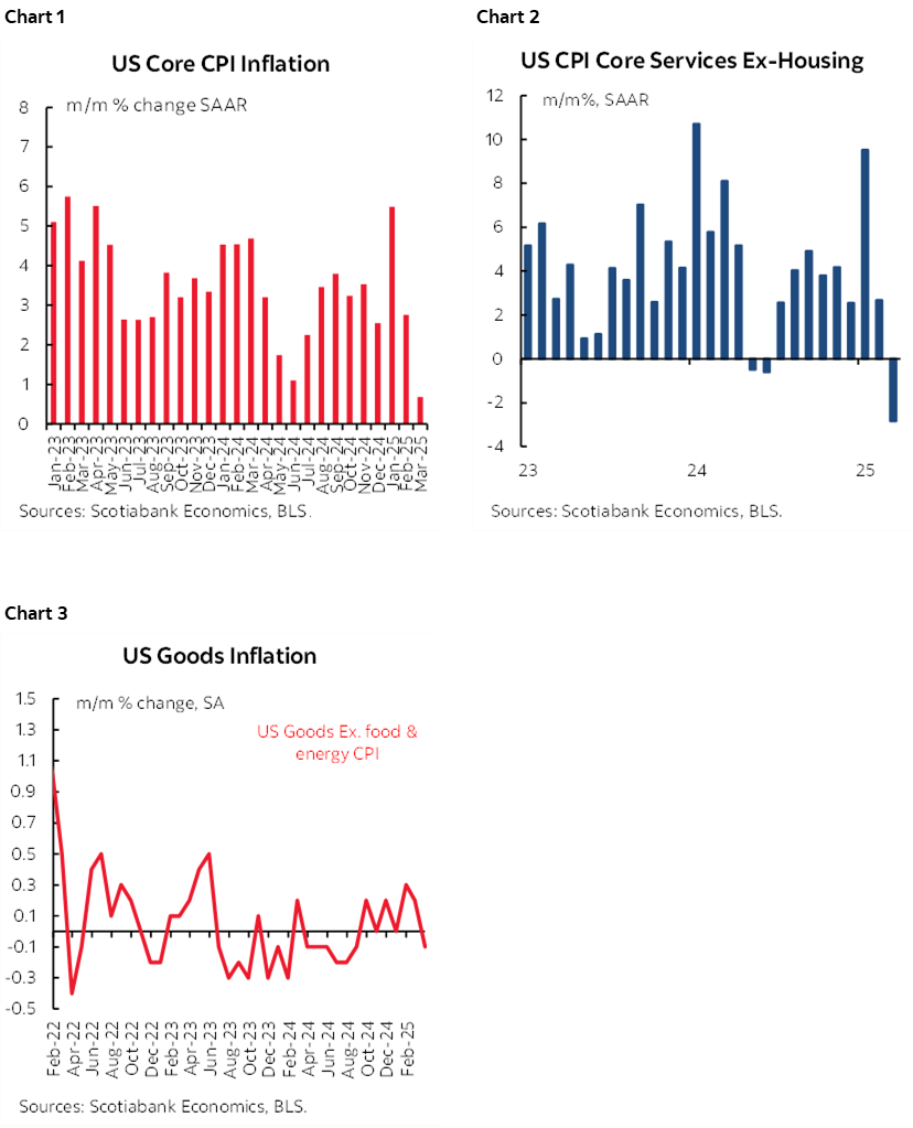 Chart 1 shows the sudden plunge of core CPI to its weakest m/m reading since January 2021. Chart 2 shows that much of this was driven by core services CPI (ex housing and ex-energy) that hit the lowest m/m reading since May 2020. Core goods CPI was also soft (chart 3, next page).