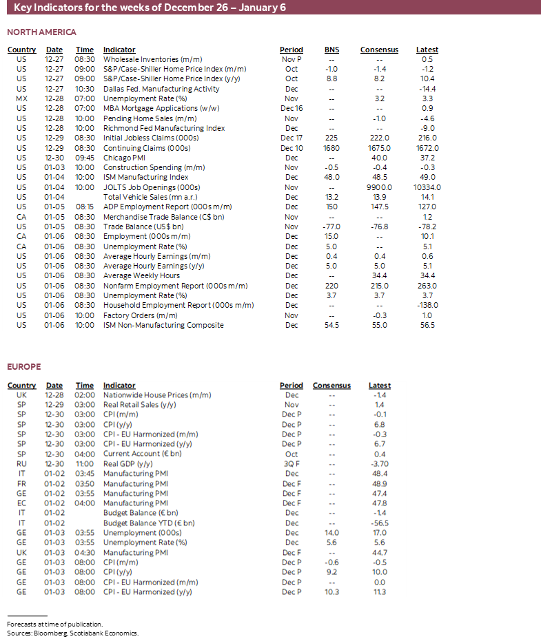 This two-week edition will cover expected developments across global macro calendars through to the first week of the new year.