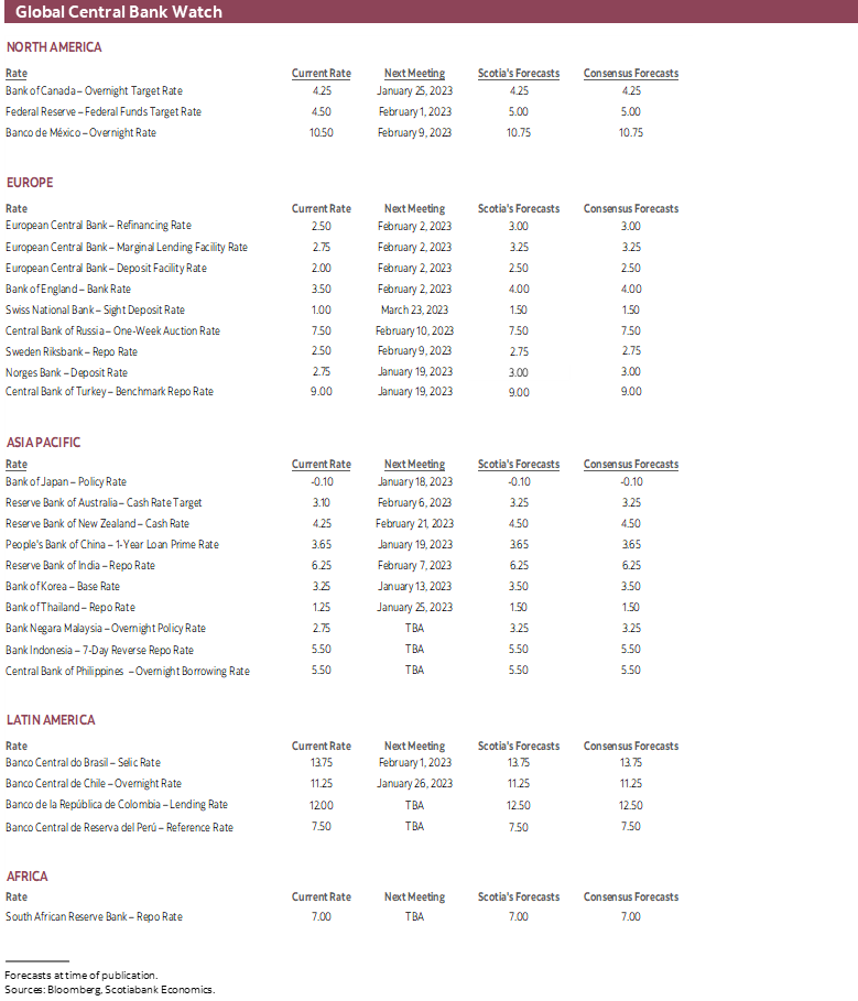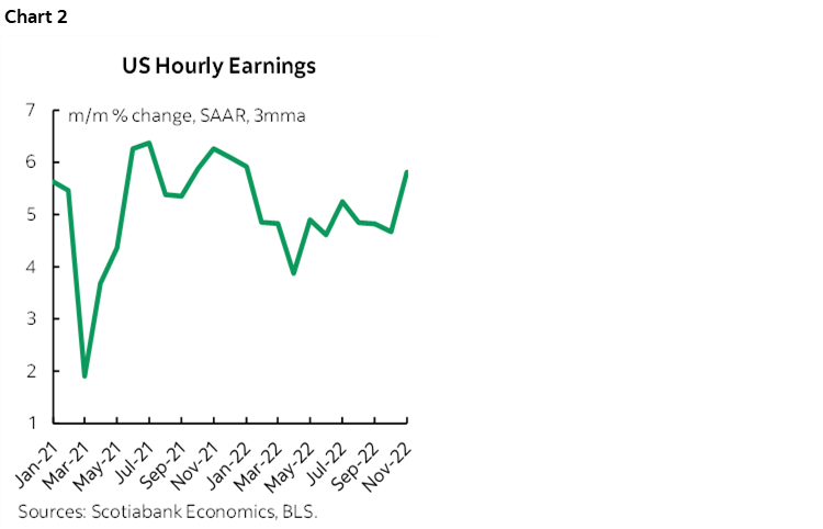 After a quiet week between holidays, the first week of the new year will start with a bang when we find out how 2022 ended for workers. StatCan will update its Labour Force Survey on Friday January 6th including estimates of employment and wages. This will be the opening salvo of releases in the new year on the path to the Bank of Canada’s next policy decision on January 25th and in the wake of a reasonably hot core inflation reading (here). After jobs the focus will then turn to the BoC’s quarterly surveys on January 16th including measures of wage and inflation expectations, followed by another CPI reading for December the next day.