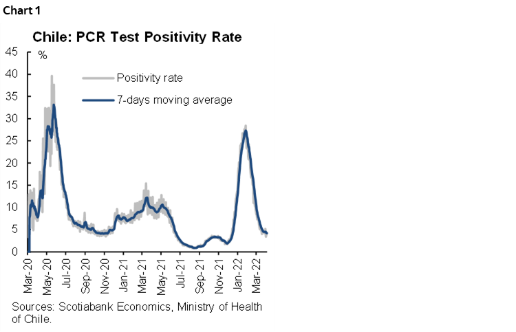 The daily number of confirmed COVID-19 cases has continued to slow in recent weeks. The test positivity rate fell to 4.3% (chart 1). Occupancy rates of ICU beds and COVID-19-related death rates are also decreasing. Meanwhile, the vaccination campaign has reached 94.4% of the eligible population. The rollout of booster (third) doses continues—reaching 13.9 million people—and the new booster dose (fourth) is in progress—with 3.1 million people covered. Overall, mobility has continued to increase in April, which will support the economic activity, mainly services.