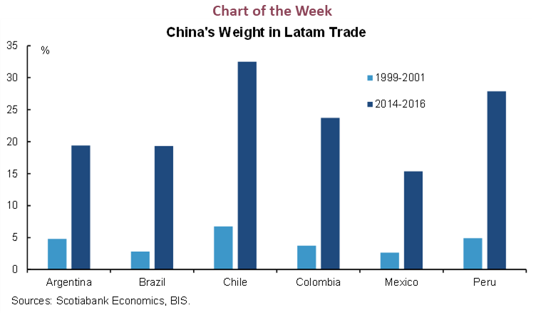 - The Latam region has seen a huge shift in trade patterns over the past 30 years with the progressive integration of China into the global economy. Large changes to trade patterns, however uncertain, could entail considerable dislocation. Policies that expand trade infrastructure and remove distortions to intra-regional trade would protect the region from the gales of war.