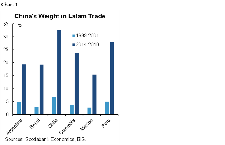 Far more worrisome is the potential for a major realignment of global trading patterns because of geopolitical factors. It is not an exaggeration to say that the integration of China into the global economy has led to a revolution in international trade. This is certainly the case with respect to the Latam region. Arguably, no region has been more affected. Over the past three decades, the share of China in the region’s trade weights (as calculated by the BIS) has risen dramatically (chart 1). China now represents a major buyer of the region’s natural resources, an important source of finance to develop and exploit these resources, and supplier of consumer goods.