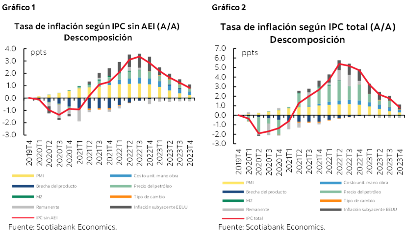 Este documento ha sido elaborado por Scotiabank Economics como un recurso para los clientes de Scotiabank. Las opiniones, estimaciones y proyecciones que aquí se exponen son las nuestras a la fecha del presente y están sujetas a cambios sin previo aviso. La información y las opiniones incluidas en este documento provienen de fuentes consideradas confiables, pero no se ofrece ninguna declaración ni garantía, expresa o implícita, con respecto a su exactitud e integridad. Ni Scotiabank ni alguno de sus oficiales, directores, socios, empleados o empresas afiliadas asumen ninguna responsabilidad por cualquier pérdida derivada del uso de este documento o su contenido.