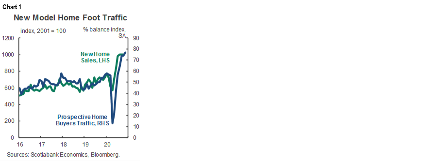- US new home sales during November are expected to be little changed, notwithstanding still elevated foot traffic through model homes as shown in chart 1 (10amET).