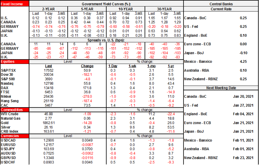 The bigger uncertainty surrounds the preliminary reading for November GDP. There are two forces at play in driving expectations for November. One is that November data has been pretty solid thus far. Hours worked were up by a robust 1.2% m/m for the reference week including the 15th of the month. Since GDP is hours worked times labour productivity the gain in hours worked is a good sign. True, the estimate is for the middle of the month before Toronto and some of its surrounding ‘burbs went into lock down the following week, but that might not get fully captured in the preliminary estimates as opposed to revisions. We also know that housing starts were up 14% m/m. Retail sales were “relatively unchanged” which seems to be StatsCan code language for a decent gain given the pattern of late. Wholesale trade was up by a strong 1% m/m but existing home sales slipped by 1.6% m/m.