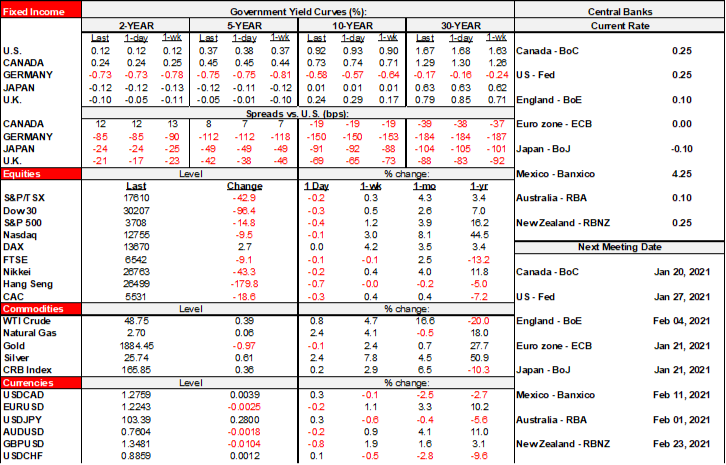 - Stocks are mildly lower by ¼% to ½% in the US and Canada. European exchanges range from down 1% to roughly flat.