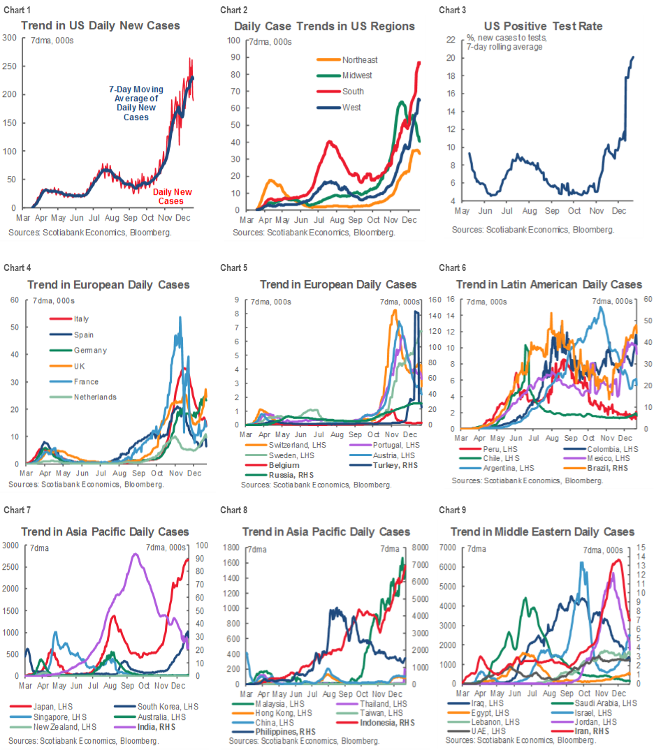 Markets are ignoring the weekend movement toward the US$900B US stimulus and US$1.4 trillion funding bills with voting expected today in the House and then the Senate. The broad outlines of the stimulus package include US$284 billion of funding for the Paycheck Protection Program, US$600/person stimulus cheques, a $300/week unemployment benefits extension, a one-month extension of the eviction moratorium through January, plus targeted aid to airlines, education, and vaccine distribution. The stimulus cheques will go to those earning up to US$75k/yr with the amount reduced and then eliminated for those earning over US$99k. The deal does not include aid for state/local governments or COVID-19 liability protections. The funding bill would avert a government shutdown and fund the government until September 30th 2021.