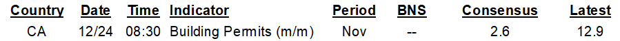 8. Canadian and Latin American calendars will be dead quiet. The next thing to watch out of Canada will be the December jobs report on January 8th.