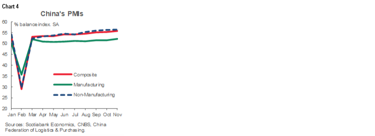 5. China will release the state versions of its PMIs on Wednesday December 30th. As shown in chart 4, they’ve generally been more resilient than across its main export markets in Europe and the US partly because of restocking across western economies but also on domestic strengths in China’s economy.