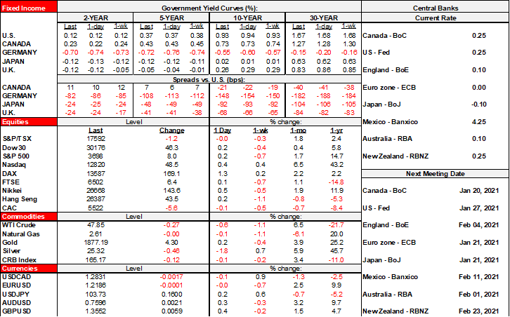 2. US stimulus and funding bills: Trump is holding up the US$900 billion stimulus package and US$1.4 trillion agreement to fund the US government through to the September 30th 2021 fiscal year-end. He has not said he will veto the bill, but has said he is seeking bigger stimulus cheques than the means tested US$600/person provision and wants to slash foreign aid as his definition of waste in the bill. It’s also feasible that his real intent is to seek revenge on Republicans who acknowledged his defeat (albeit long after everyone else…) and on his pending defeat at the hands of Congress on the defense bill. It’s also possible he’s doing what everything feared and acting with extraordinary petulance by refusing to cooperate in clear defeat as he issues pardons for yet more unsavoury types. At this point I’m cautiously assuming he’ll ultimately sign it and avoid the expiration of jobless benefit enhancements and eviction moratoriums, but it’s hardly clear this will happen. Here are the options as I understand them.
