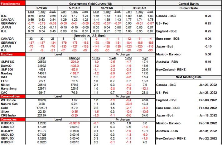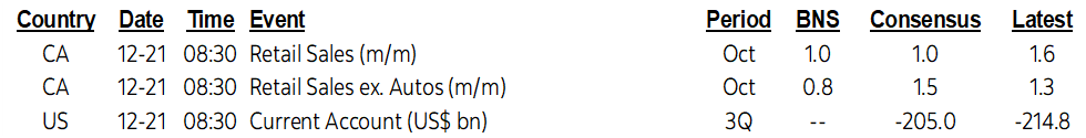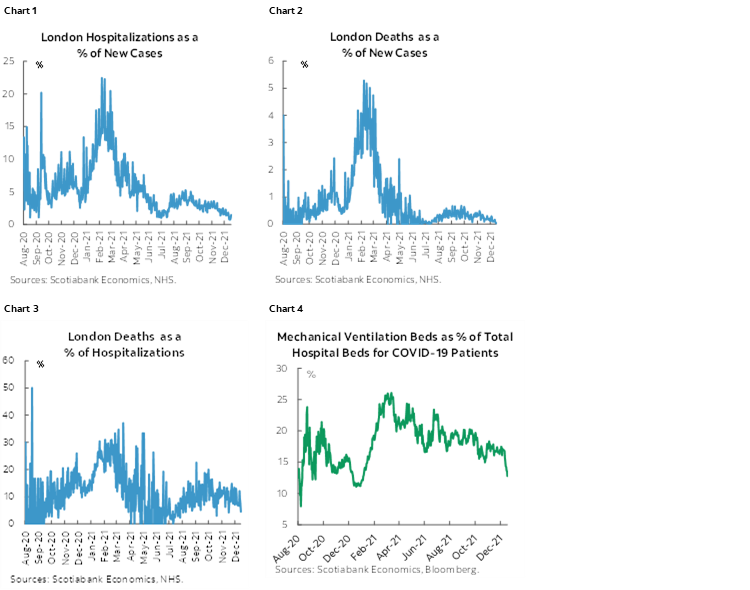 The only calendar-based global development is Canadian retail sales that don’t even matter in the local market context given forward-looking uncertainties (8:30amET). The combined October reading and the better than expected initial flash print for November beat expectations all around. October’s gain landed at 1.6% which was higher than StatsCan’s initial 1.0% m/m guidance based upon a partial sample. The prior month’s 0.6% m/m drop was revised to be a little better at –0.3%. But the big surprise—to me at least—was another 1.2% m/m rise in the value of sales in November despite a sharp drop in auto sales and despite BC flooding effects over the back half of the month. This leaves us tracking about a 5% q/q annualized lift in retail sales volumes during Q4 so far after a 6% q/q annualized gain in Q3. This also confirms expectations for strong GDP growth during October (Thursday) and another likely gain for November given the gains in hours worked, retail sales and housing starts. Still, back to the point about being stale, this is data that is obviously pre-omicron in nature and so I get the flat initial response in CAD, notwithstanding that bonds reacted by cheapening the 2-year note to the tune of about 2bps or so. Stale data is a nice segue into assessing evolving forward-looking risks.