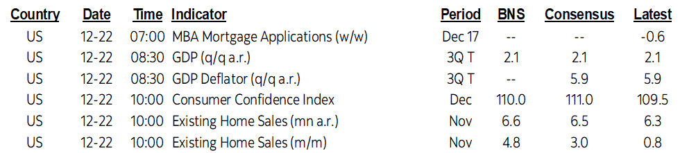 - The third swing at Q3 GDP (8:30amET) incorporates fuller services spending estimates and is expected to be left largely unchanged.