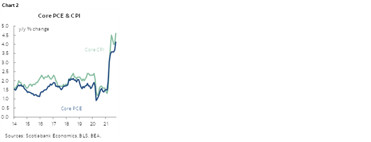 3. The Fed’s preferred inflation gauges (8:30amET) are likely to follow CPI higher at a somewhat gentler pace given methodological differences and the general pattern (chart 2).