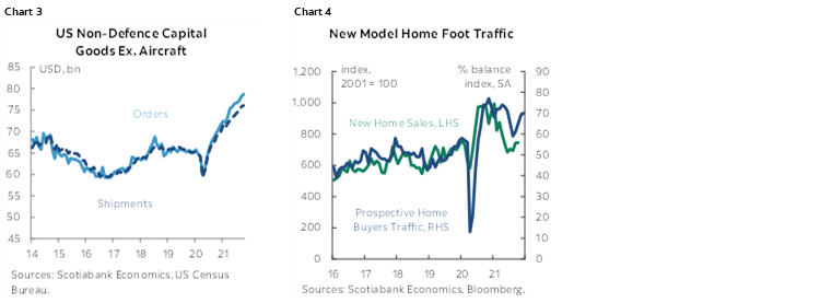 4. Watch US core durable goods orders (8:30amET) for continued momentum in demand for capital goods as shown in chart 3, and November’s new home sales (8:30amET) that are likely to follow measures like model home foot traffic higher (chart 4).