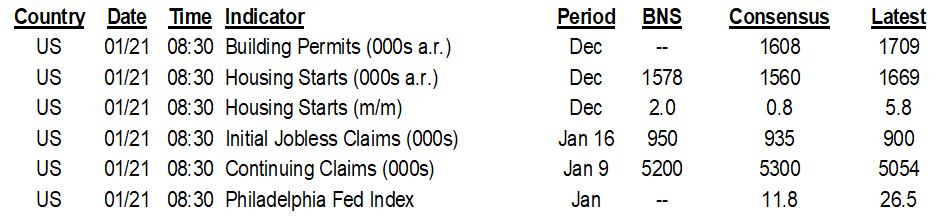 - Housing starts were up 5.8% m/m in December (0.8% consensus) and revised up to a 3.1% gain the prior month from a 1.2% initial print. Building permits suggest there is more to come as they soared by another 4.5%.