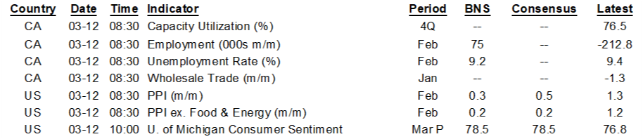 US releases will be light and focused on producer prices during February (8:30amET) and the University of Michigan’s consumer sentiment reading for March (10amET).