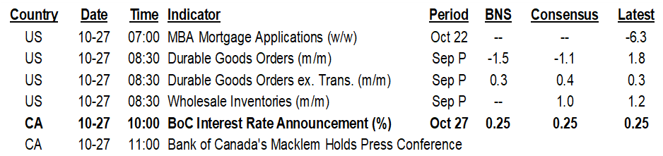 The Bank of Canada will be the main focus for many of us from about the 10amET–12pmET window. Please see yesterday afternoon’s note, the week ahead preview here and last Thursday’s deck and client conference call replay for more.