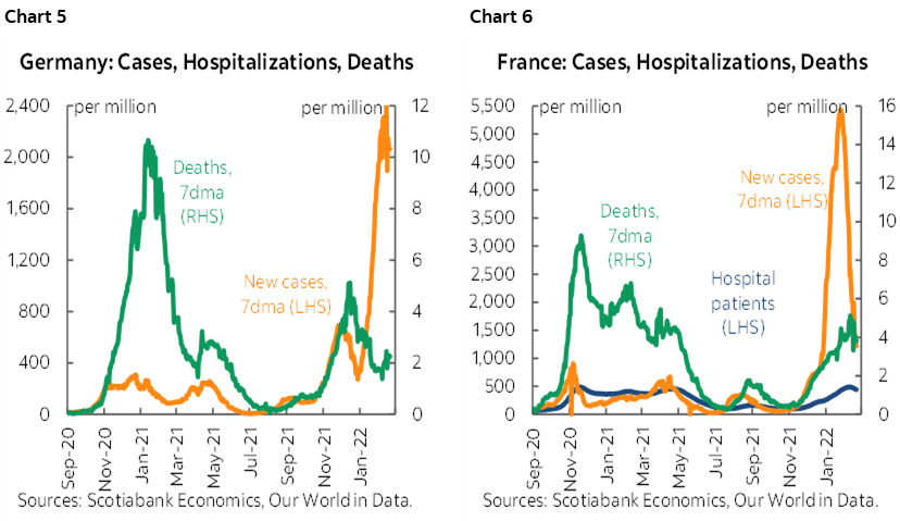 For Canadians and Americans returning from the long weekend the only other updates included a round of global PMIs that arrived yesterday morning and on Sunday evening. They showed encouraging signs in support of an omicron rebound with improvements in the Eurozone, UK and Australia, while Japan fell. They are nevertheless being treated as stale given the geopolitical developments.