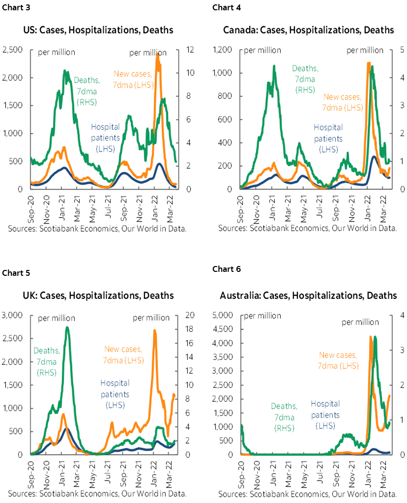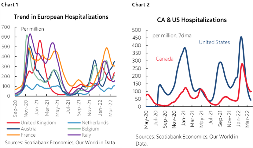 Canada will be quiet and follow the global market tone today and for most of the week. We might get a date for the upcoming Federal Budget at some point this week. The main takeaway from last week is that the coming Federal budget is set to be a spending spree that tosses aside legitimate concerns about awful productivity and a soaring cost of living. The budget will be based upon private sector forecasts that pre-date the war in Ukraine and recent bond market developments. Canadian yields are above the US at the front-end and in 10s as the relative borrowing advantage continues to slip away.