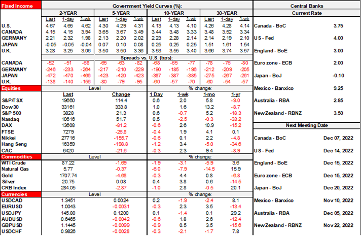 Continue to watch Fed-speak for guidance on the diversity of opinion around how to adjust terminal rate projections in next month’s updated SEP and dot plot given Chair Powell’s guidance last week. They wisely stayed out of the fray on election day and might keep playing it safe today. Richmond’s Barkin (11amET) and Minneapolis President Kashkari (8pmET) are both on tap.