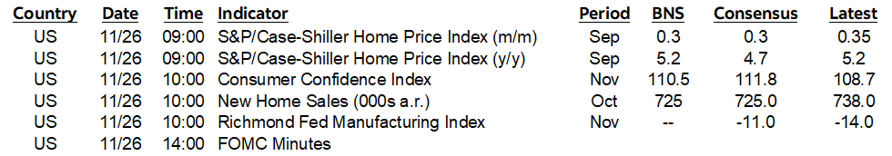 Of the US releases, the one that is most likely to be impactful will be consumer confidence as at least a temporary initial verdict on the election’s impact upon the consumer mindset plus other considerations. The Conference Board’s consumer confidence index is due at 10amET) at the same time as new home sales during October (10amET). Repeat sale home prices are due out for September and Q3 at 9amET.
