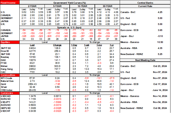 The US releases the Fed’s preferred inflation gauges and estimates for income and spending at households at 8:30amET covering the month of August. Core PCE is expected to follow the soft tone of core CPI with most estimates at 0.2% m/m SA and some at 0.1%. Modest nominal gains in income and spending are also expected.