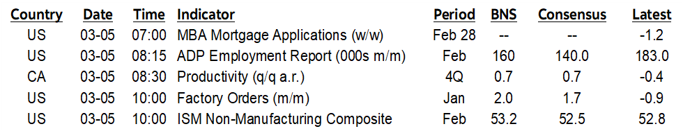 Other more minor releases will include Canadian Q4 labour productivity figures (8:30amET) that—gasp—might actually rise in the wake of a strong Q4 GDP report, plus US factory orders (10amET).