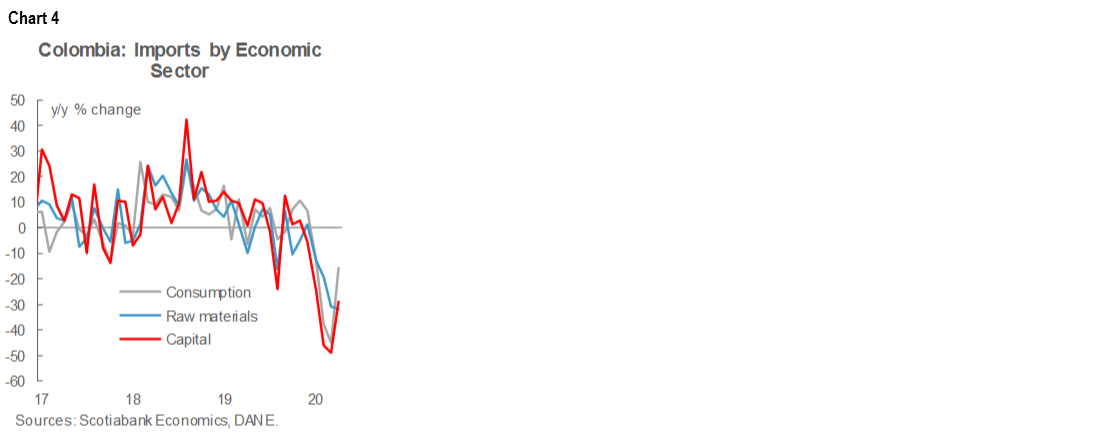 • Colombia: Coincident indicators beat expectations while imports led to a narrowing trade deficit