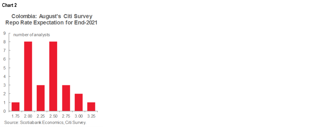 COLOMBIA: AUGUST’S CITI SURVEY SHOWS THE END OF MPR EASING CYCLE AT 2%