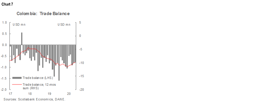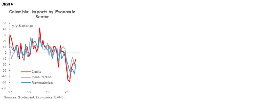 - Capital-goods imports were down -11.1% y/y due to contractions in construction-related sub-sectors (-46% y/y) and the agricultural sector (-17.7% y/y).