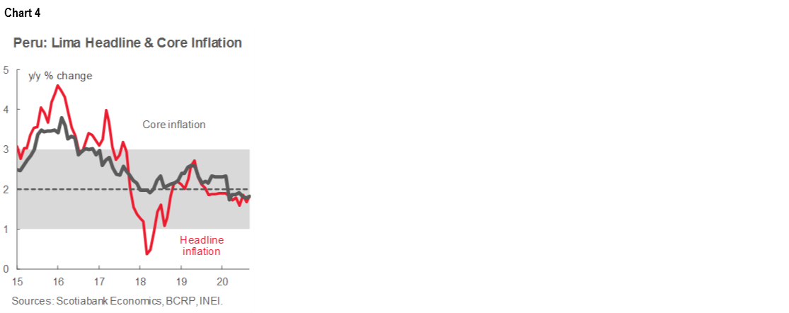 Nevertheless, the BCRP’s main messages remain unchanged: it is committed to maintaining an expansive monetary stance for a prolonged period of time, with a bias to implement greater stimulus, if necessary, through additional measures. For the moment, we do not perceive that the Bank is preparing to implement any new instruments or enhance existing ones, but it has been more active lately in managing the volatility of the PEN.