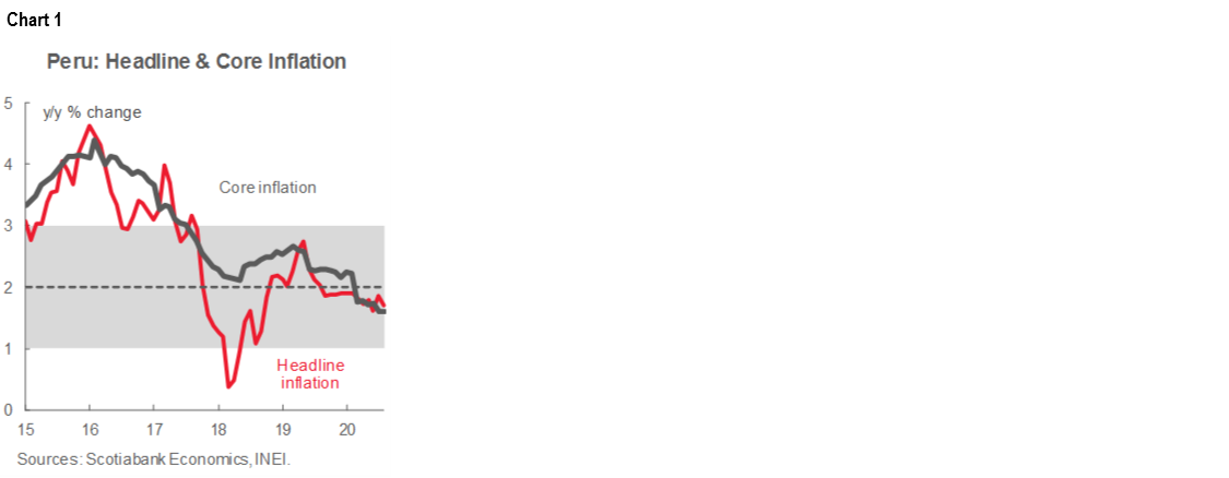 - Peru. Lima leads the Latam-6 in the release of September price data with headline inflation numbers out on Thursday. Consensus expects Lima CPI to hold at 1.7% y/y from August (chart 1), but our team forecasts a slowing to 1.5% y/y on the back of a -0.2% m/m pullback. We still expect inflation to end the year at 1.1% y/y, however—well above the 0.8% y/y anticipated by the BCRP.