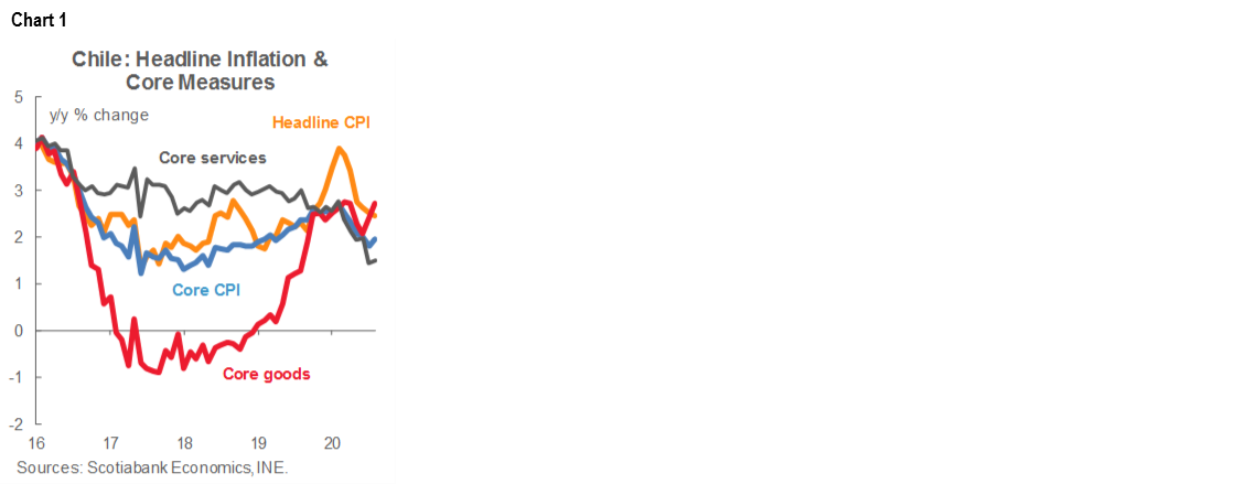 Chile: August CPI rose 0.1% m/m and 2.4% y/y; inflation expected to be higher in September and October