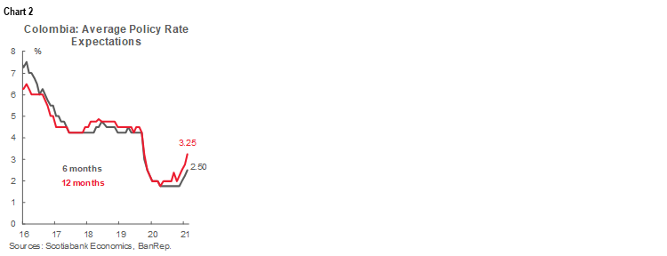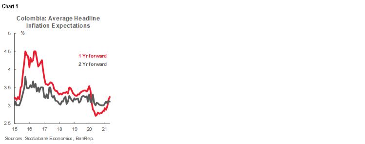- Colombia: BanRep’s economic survey expects anchored inflation in the long run and higher repo rate down the road