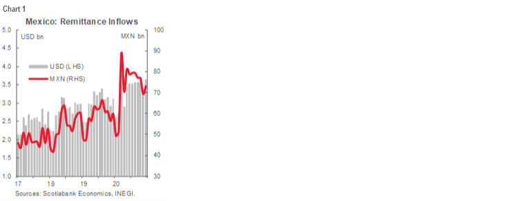 Looking ahead, further economic recovery in the US, supported by a new fiscal stimulus package, should continue to drive strong remittance flows into Mexico during 2021.