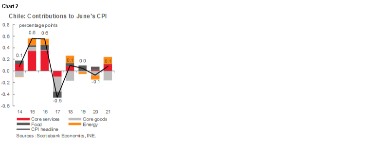 - Chile: If not for the increase in gasoline prices, inflation would have been 0% m/m in June