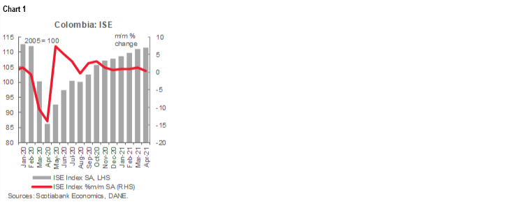 COLOMBIA: APRIL BOOST IN ECONOMIC ACTIVITY OWING TO BASE EFFECTS BUT RESILIENT TO LOCKDOWNS; STILL SLIGHTLY BELOW (0.4%) PRE-PANDEMIC LEVELS