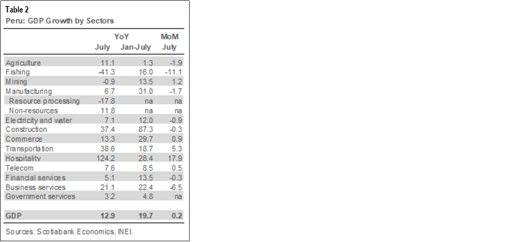PERU: Q3-2021 KICKSTARTS WITH ROBUST GDP GROWTH IN JULY; BCRP Q2 INFLATION REPORT DUE FRIDAY