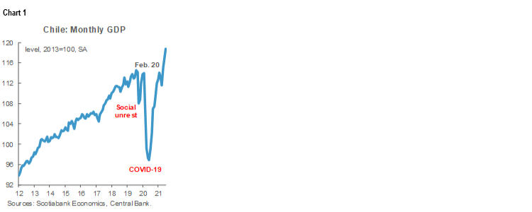 CHILE: GDP GREW 18.1% Y/Y IN JULY DUE TO MOBILITY AND AMPLE LIQUIDITY; ECONOMY ON COURSE FOR DOUBLE-DIGIT GROWTH IN 2021