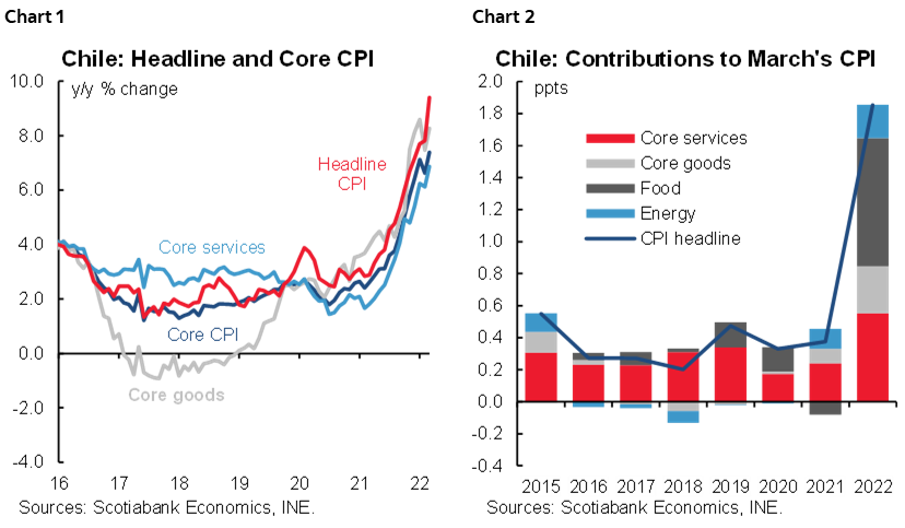 - Chile: March inflation of 1.9% m/m above already-high expectations