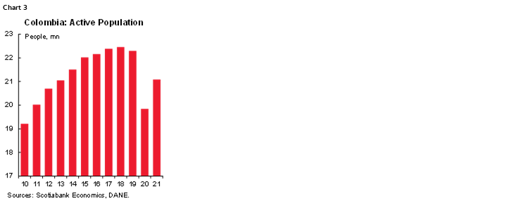 COLOMBIA: 2021 EMPLOYMENT CLOSED 5.1% BELOW PRE-PANDEMIC LEVELS; ACTIVE POPULATION LOWEST SINCE 2013