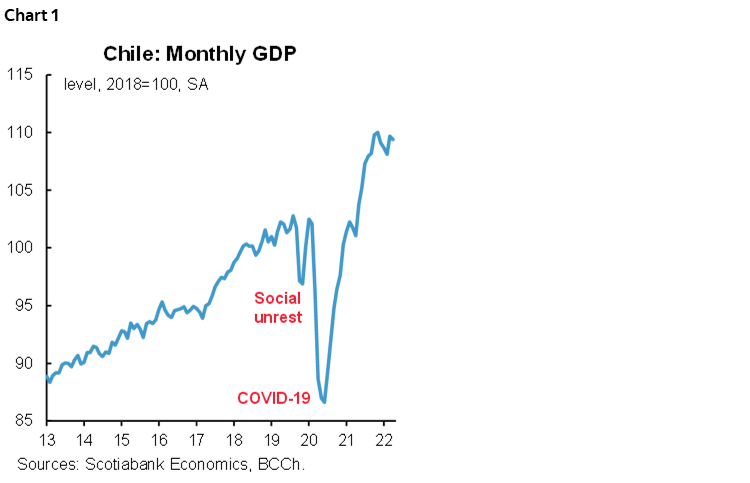 - Chile: Non-mining economic activity remains resilient, rising 0.2% m/m driven by trade