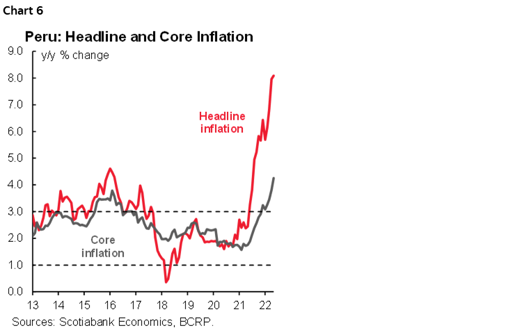 Year-on-year inflation accelerated marginally from 8.0% y/y to 8.1% y/y (chart 6), with May marking the 12th consecutive month that inflation exceeded the upper limit of the central bank’s target range (between 1% and 3%).