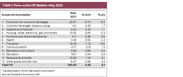 PERU: INFLATION IN MAY PRESAGES POSSIBLE PEAK