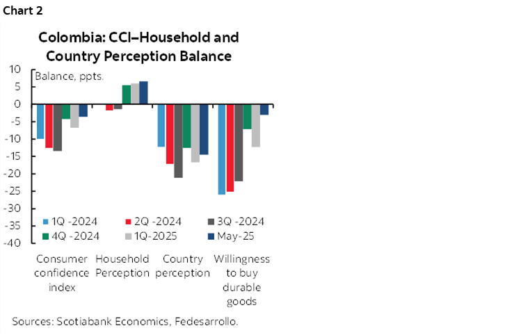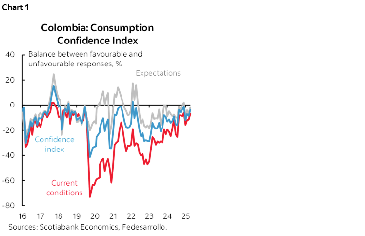 - Colombia: In May, consumer confidence improved amid positive expectations on households’ economic conditions