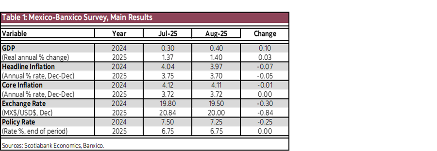 MEXICO: UPWARD REVISIONS IN GROWTH, LOWER INFLATION EXPECTATIONS IN BANXICO’S SURVEY