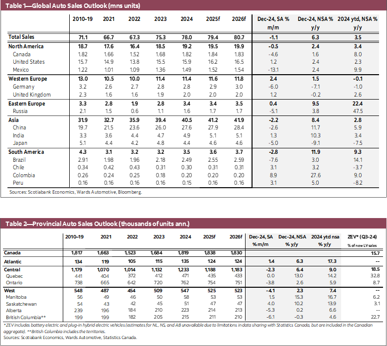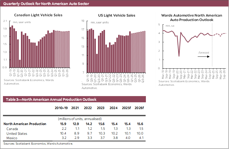 The trade situation continues to be volatile, with tariff threats changing by the day. Our outlook for Canadian light vehicle sales is 1.84 mn in 2025 and 1.83 mn in 2026, but faces downside risk should broad-based tariffs materialize.